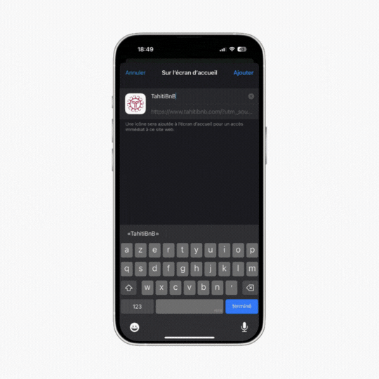 Appuyez sur « Ajouter à l’écran d’accueil »